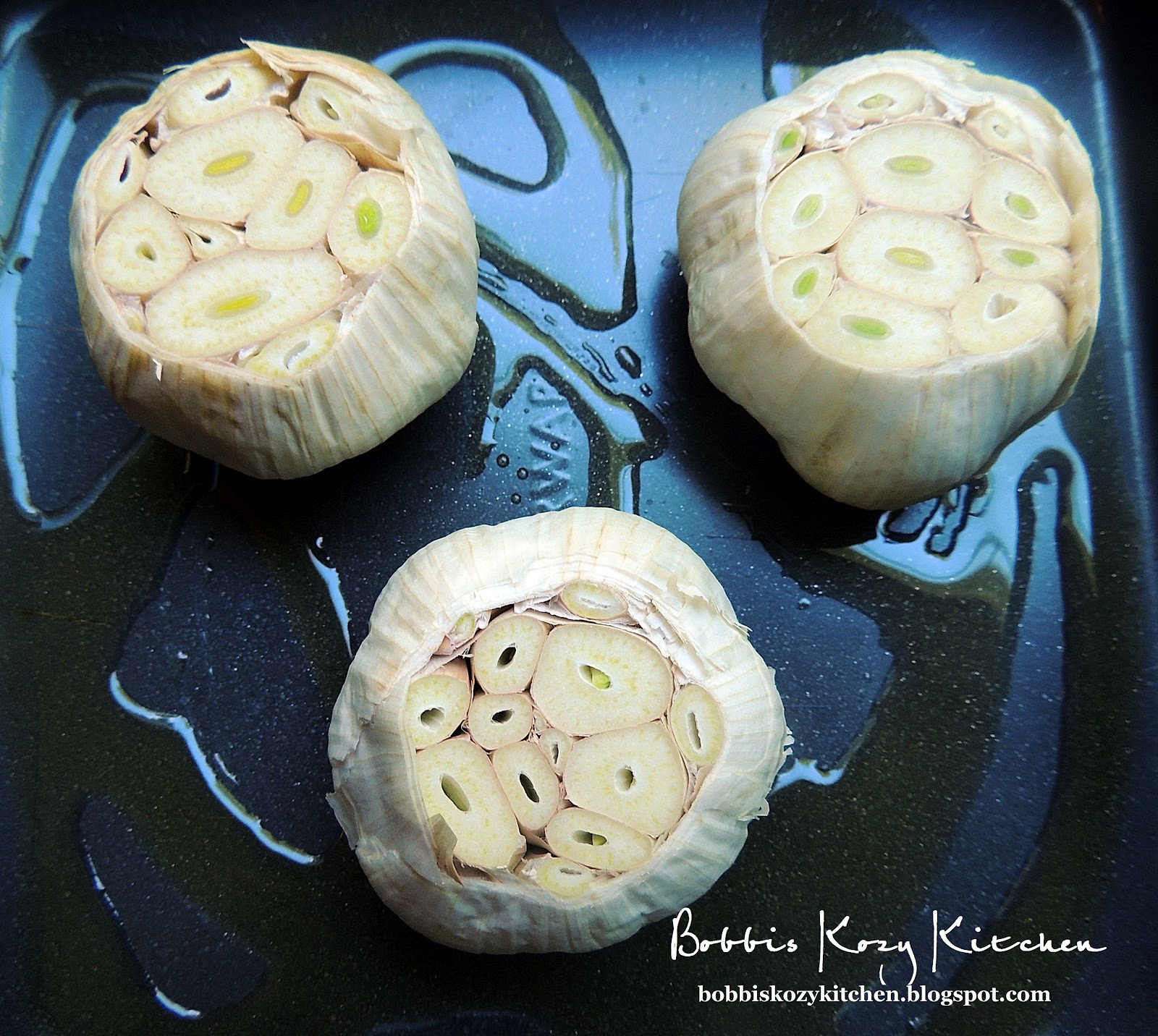 I wasn't sure if I should do a post on how to roast garlic. I thought maybe people would read it and say, "Well duh Bobbi I know how to do that!". But then I remembered back, not so long ago, when I didn't know how to do it so I figured that this would be for those people. I don't want one person to miss out on the great taste of roasted garlic! I use it in all sorts of things. One of my favorites is Roasted Garlic Mashed Potatoes or the healthier version Roasted Garlic Mashed Potatoes and Cauliflower. Roasted garlic can be substituted for regular garlic if you want a milder, sweeter flavor. Raw garlic can be up to 4 times stronger than roasted garlic.