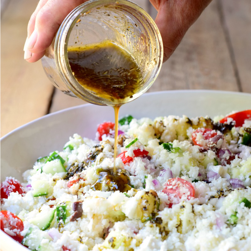 MCT oil supports fat-burning potential – Because it utilized by the body a little differently than other sources of fat, MCTs (medium-chain triglycerides) provide you with an alternative source of energy and can help improve your body’s ability to burn body fat as a source of fuel. It supports energy and mental focus on a low-carb diet. MCT oil can sometimes cause digestive issues. If you are new to keto or MCT oil I would recommend using 1 tablespoon of MCT oil to 3 tablespoons olive oil in this recipe, then work your way up to full strength as your body fat adapts.