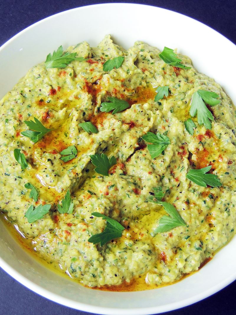 - Place the grilled zucchini, garlic cloves, lime juice, tahini, cumin, cilantro, salt, and pepper, into a food processor. Turn it on and run until the hummus becomes smooth. Add a bit of olive oil if you want a thinner consistency